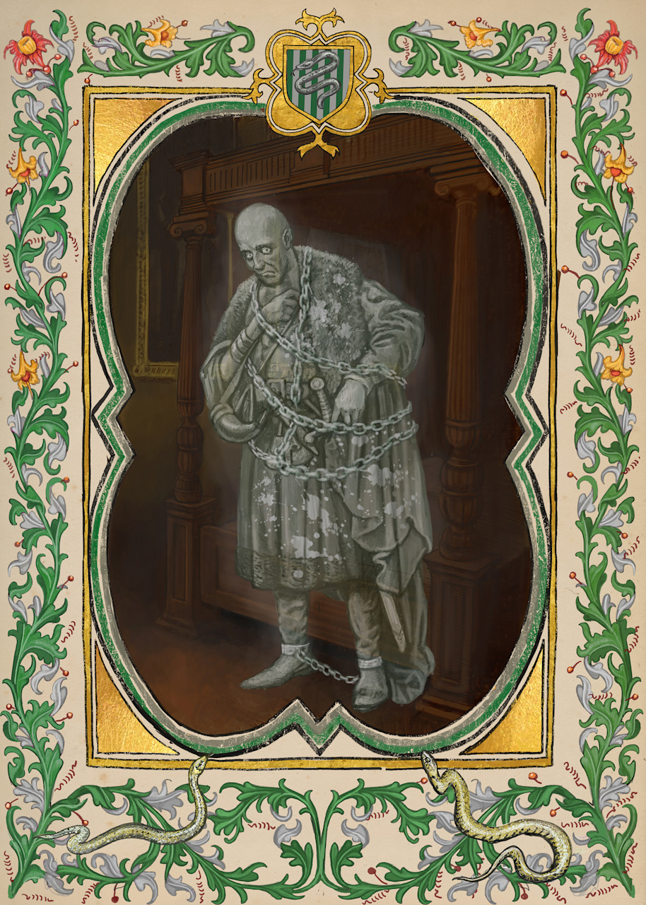Arguably the most terrifying of the Hogwarts ghosts, the Bloody Baron wore the chains he clanked so loudly as penance for a crime of passion committed centuries ago.