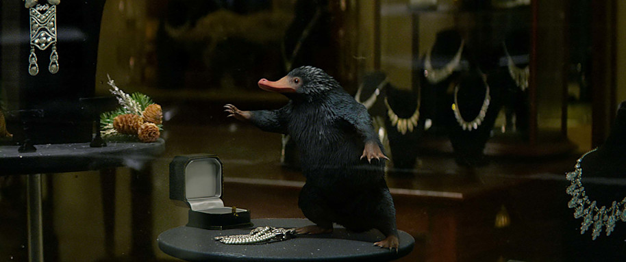 The difference was that the Niffler not only knew what he was doing, but knew what he was doing was technically bad behaviour in the human world (even though it’s a natural impulse to him). This is another reason he continually evaded Newt’s attempts to catch him again. At one point he posed like a model in a shop window display because he knew Newt was looking for him. The Niffler had the same kind of roguish personality that people like in cats. He knocked the crockery off the sideboard of Newt’s life. And he did it on purpose.